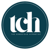 A round logo with a black background, a crown, and the letters T.L.C.C in the center, surrounded by a laurel wreath, set against an orange, geometric patterned background.